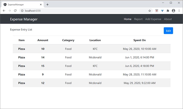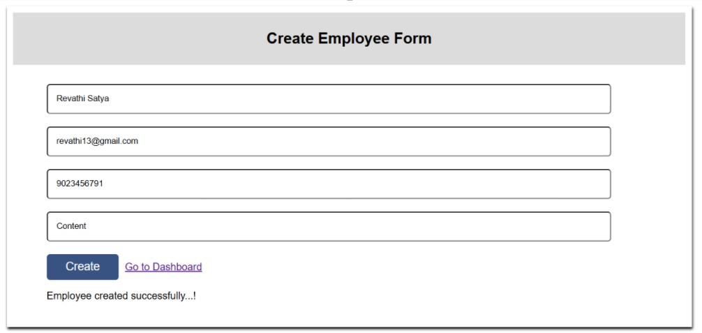 Once you save all the code changes and refresh the browser, you will get the following output.
