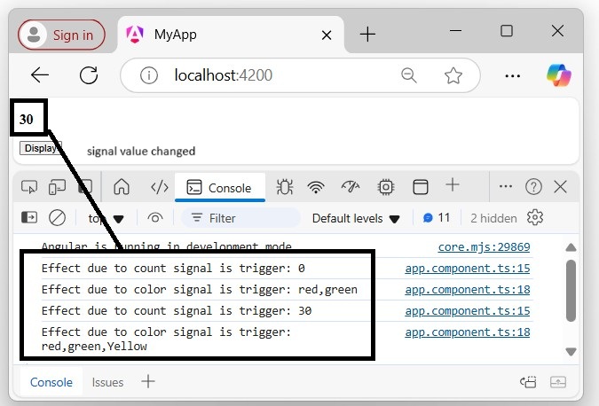 In the above program, we are calling the ngOnInit lifecycle hook to specifically mention that the value of the this.values parameter should be set to Hello.