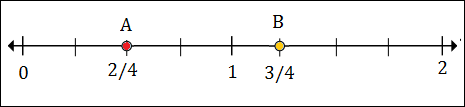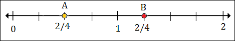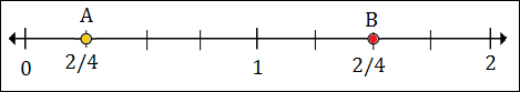 To plot 1/2 or 2/4, we put a point between 0 and 1, 2 marks to the right of 0.