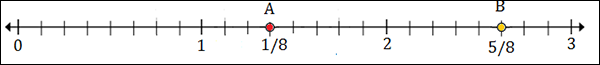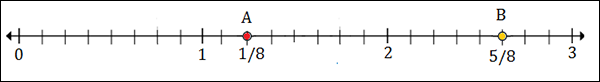 Marks divide each unit into 8 equal parts on number line here.