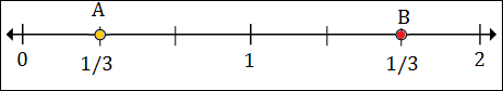 Marks divide each unit into 3 equal parts on number line here.
