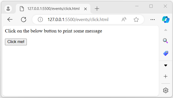 In the above program, when the user clicks on the displayed message, a pop-up alert will appear on the browser screen −