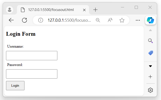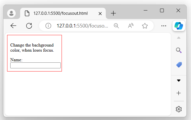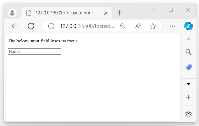 In the example below, we use the focusout() method with an input field to display it as an unfocused input field once the program gets executed −