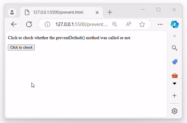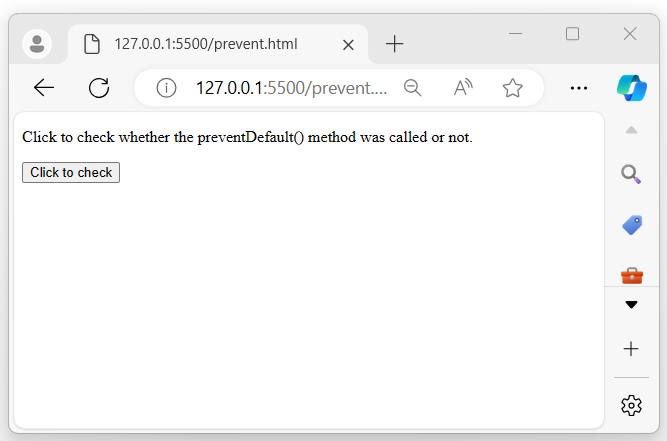 In the example below, first, we will check if the preventDefault() method has not been used to prevent the link. If it hasn’t been used, we will call this method when the user clicks on the button to prevent the link from redirection −