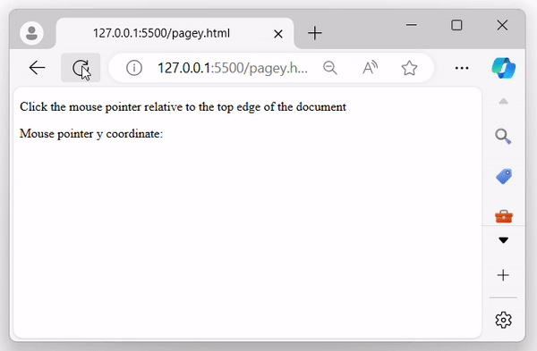 The above program returns the Y-coordinates of the mouse pointer when clicked, relative to the top edge of the document as −