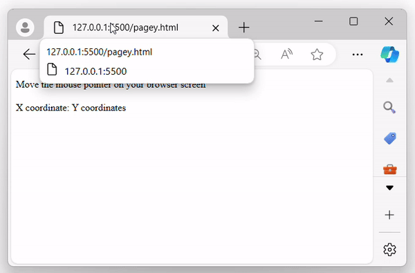When the mouse pointer moves over the browser screen, the X and Y coordinates will be displayed on the screen as −