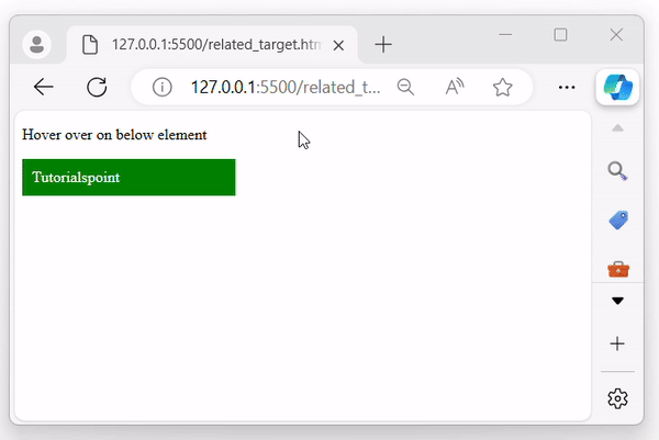 After executing the program, a box with a green background is displayed. When the mouse pointer hovers over it, a pop-up alert appears, displaying the type of element being exited −