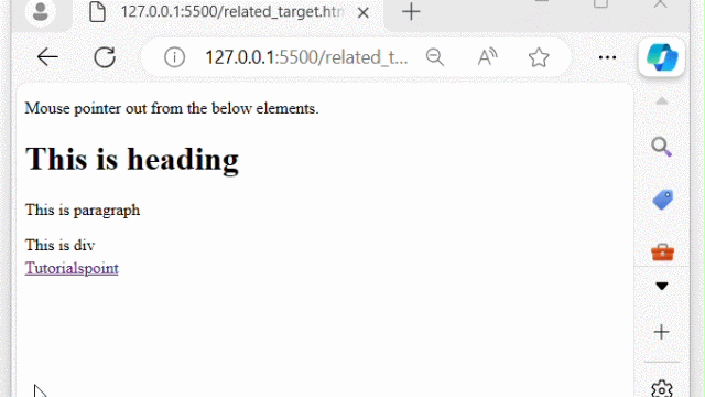 The above program displays multiple elements, and when the mouse pointer moves out from an element, the element involved in the event is displayed −