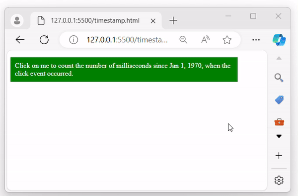 <p>Click on me to count the number of milliseconds since Jan 1, 1970, when the click event occurred.</p>
