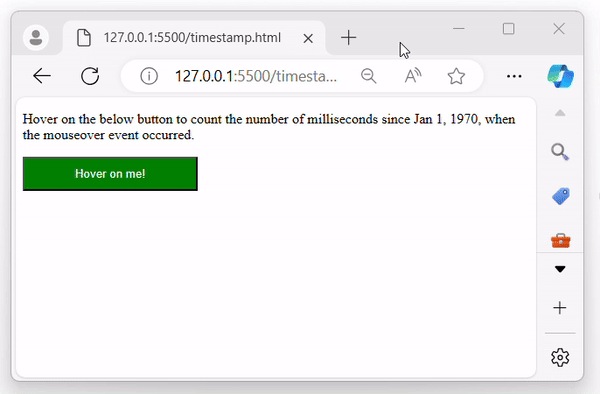<p>Hover on the below button to count the number of milliseconds since Jan 1, 1970, when the mouseover event occurred.</p>