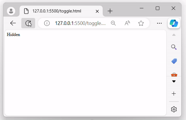 The above program displayed a message, and automatically hide when the toggle event triggered and a pop-up alert appear on the browser screen −