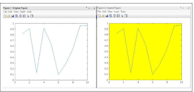 - Toolbars and Menus − The default toolbar and menu options in figures are recreated rather than copied.