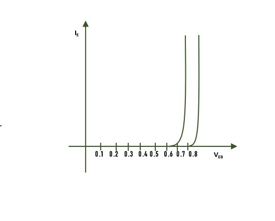 To determine the input characteristics, the collector-base voltage VCB is kept constant at zero volt and the emitter current IE is increased from zero in suitable equal steps by increasing VEB. This is repeated for higher fixed values of VCB. A curve is drawn between emitter current IE and emitter-base voltage VEB at constant collector-base voltage VCB. The input characteristics thus obtained are shown in the following figure