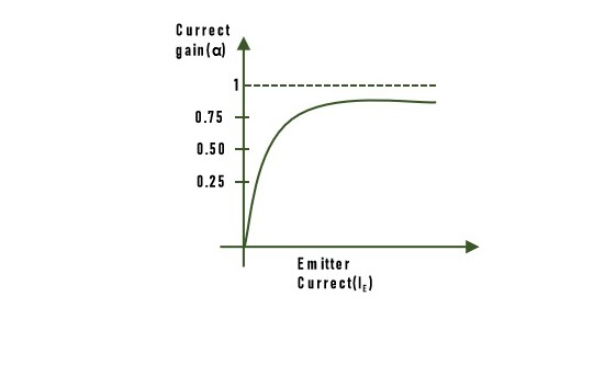 Current gain α is very low at low emitter current. With an increase in emitter current. With an increase in emitter current, α increases rapidly as shown in the graph below −