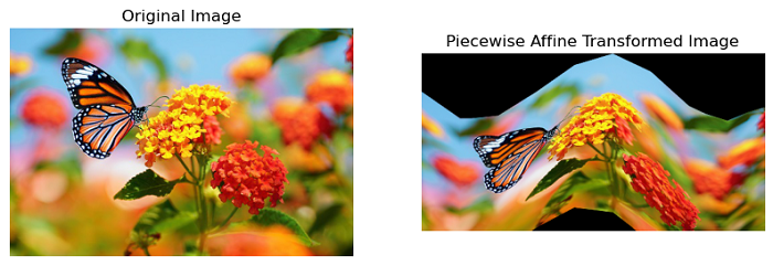 The PiecewiseAffineTransform is a type of geometric transformation, applied to an input image to move each pixel to a new position in the output image. It is a non-linear transformation technique that involves dividing an image into smaller regions (triangles) and applying individual affine transformations to each region. This is especially useful for tasks like image warping, morphing, and non-rigid image registration.